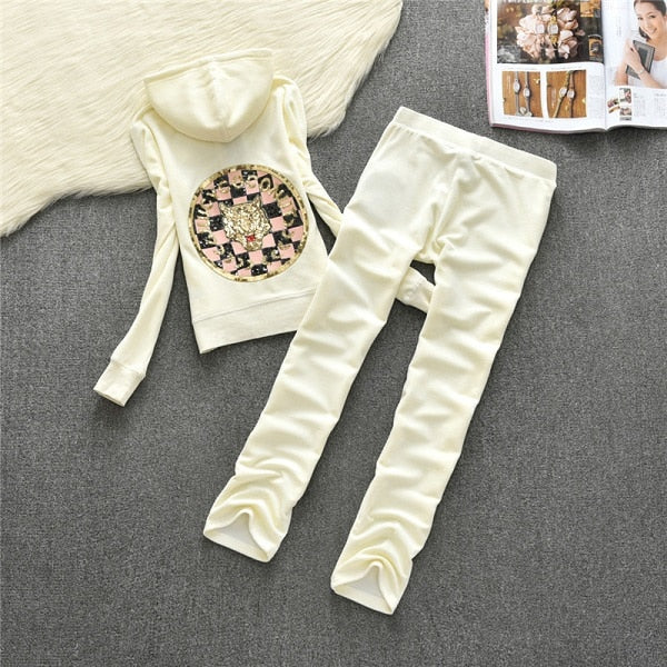 2019 Women's Yoga Set  Fitness Clothing Women Sweatshirt Pants Sets Velvet Tracksuit Women Velour smooth soft Suit